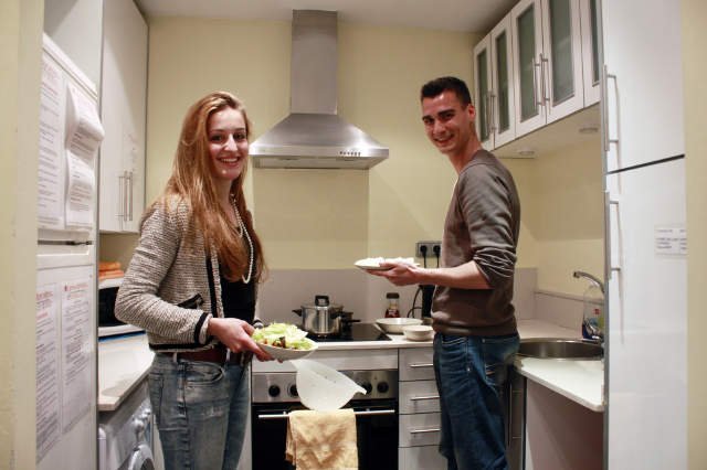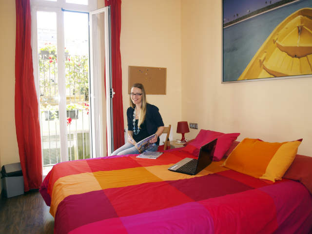 في الواقع، نحن المدرسة الوحيدة التي يمكن ضمان الإقامة في قلب برشلونة، فقط 7 دقائق سيرا على الأقدام من بلازا كاتالونيا. هذا لأنه، على عكس المدارس الأخرى في برشلونة، لدينا سكن في الموقع، يقع مباشرة فوق مدرستنا. توجد 9 شقق بنظام الخدمة الذاتية مع حمامين لكل شقة ومطبخ كامل التجهيز وصالة وتكييف الهواء وشرفات وإنترنت لاسلكي مجاني في كل غرفة وتراسات مشمسة واسعة النطاق.