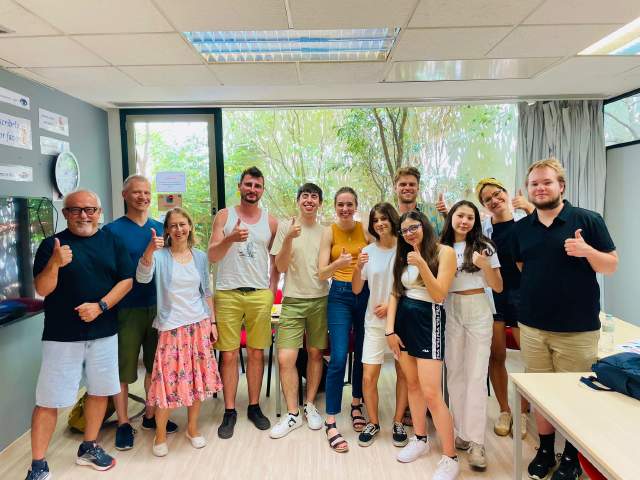الجنسيات والاعمار مختلطة في المدرسة ودورات عديدة ومستويات عديدة وبفترات زمنية مختلفة. متوسط الاعمار هو 26 طوال العام. خلال الصيف متوسط الاعمار هو 22.