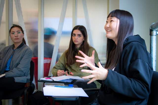 The activities that take place in class vary greatly, from conversation, to grammar, to speaking, to listening, to exchanging ideas between classmates.