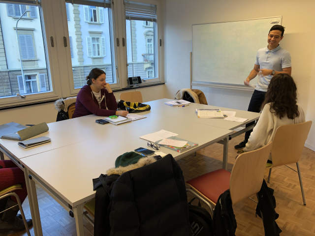 The class sizes were small so it was good for interaction with the teacher. The staff were friendly and very nice. The location was good, near the center of Bern and also beside the Historical museum of Bern, with good public transport. I would say the school itself could have had a separate common room or small canteen for cheaper drinks or snacks - but there were at least two vending machines with hot drinks.