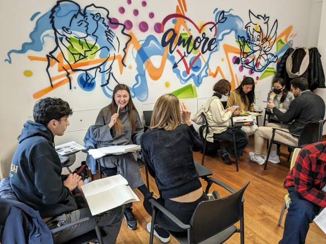 The course includes 4 lessons per day (a total of 20 lessons per week), each lasting 45 minutes. Classes are held Monday to Friday in small groups of no more than 14 students, led by qualified and passionate teachers who make learning Italian engaging and effective.